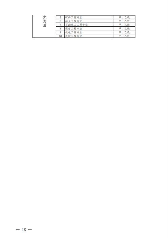 4.工程監理資質(zhì)。保留綜合資質(zhì);取消專(zhuān)業(yè)資質(zhì)中的水利水電工程、公路工程、港口與航道工程、農林工程資質(zhì),保留其余10類(lèi)專(zhuān)業(yè)資質(zhì);取消事務(wù)所資質(zhì)。綜合資質(zhì)不分等級,專(zhuān)業(yè)資質(zhì)等級壓減為甲、乙兩級。